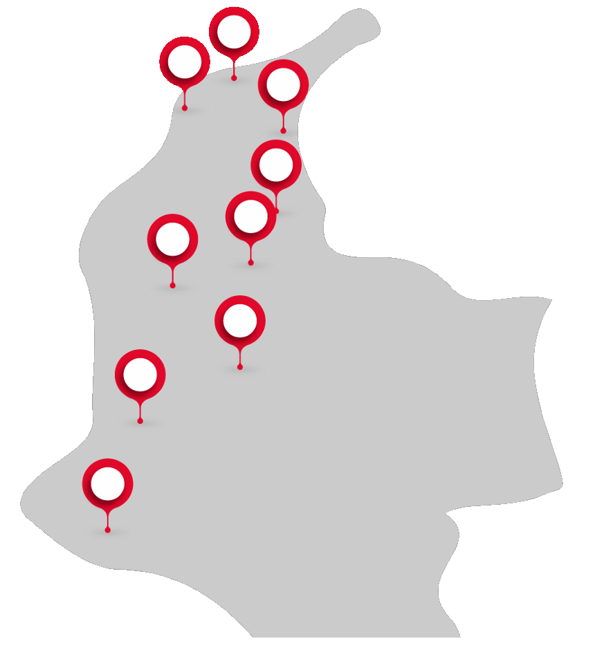 Barranquilla, Bucaramanga, Bogotá, Cali, Cartagena, Medellín, Montería, Popayán, Santa Marta y Valledupar.